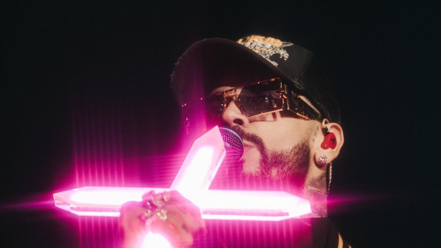 Vestido con ropa entre fina y con grandes joyas, Anuel AA emergió entre el humo al ritmo de gritos, celulares en alto y una ovación ensordecedora.