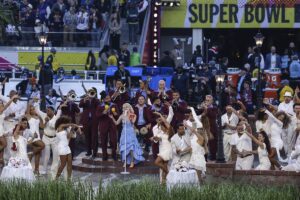 El sol estaba bajo cuando Bad Bunny emergió en los campos de caña de azúcar de Puerto Rico durante su espectáculo de medio tiempo, rodeado de jíbaros con pavas (campesinos con sombreros de paja tradicionales), viejitos jugando dominó y un puesto de piragua (raspado de hielo), símbolos innegables de Puerto Rico.