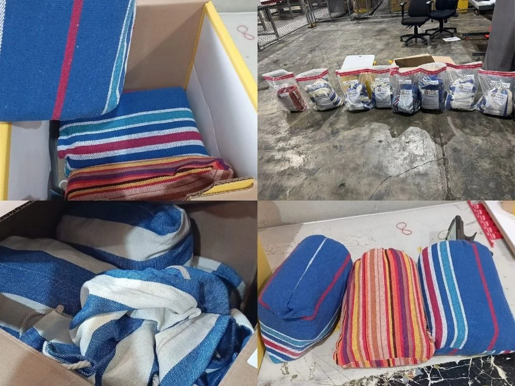 “Las autoridades, como parte de protocolo de actuación, sometieron las nueve hamacas a una prueba de campo, resultando todas positivas a sustancias controladas (cocaína)”.