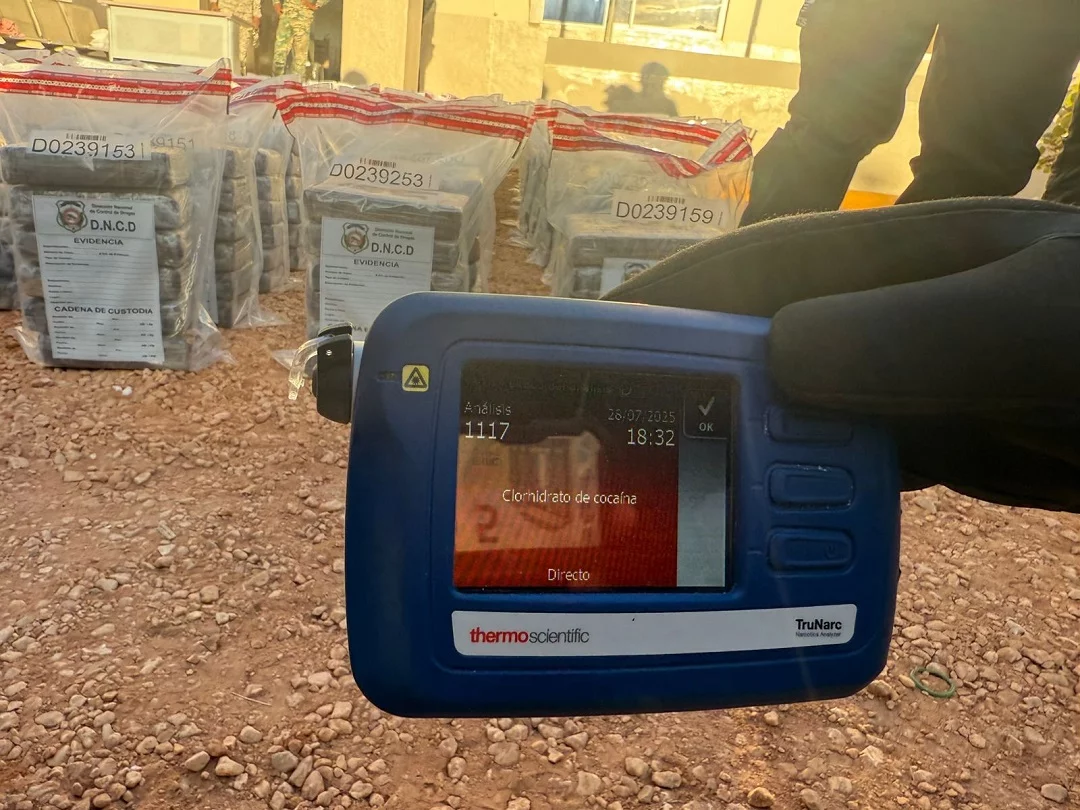 “También les fueron confiscados un celular, un GPS, dos baterías de radio de comunicación, trece tanques de combustibles, agua, bebidas energizantes, una mochila con varias prendas de vestir entre otras evidencias, el Ministerio Público y la DNCD profundizan las investigaciones en relación al caso, mientras siguen intensificando las labores de inteligencias, lo que traduce en importante golpe a al narcotráfico”, detalló Devers.