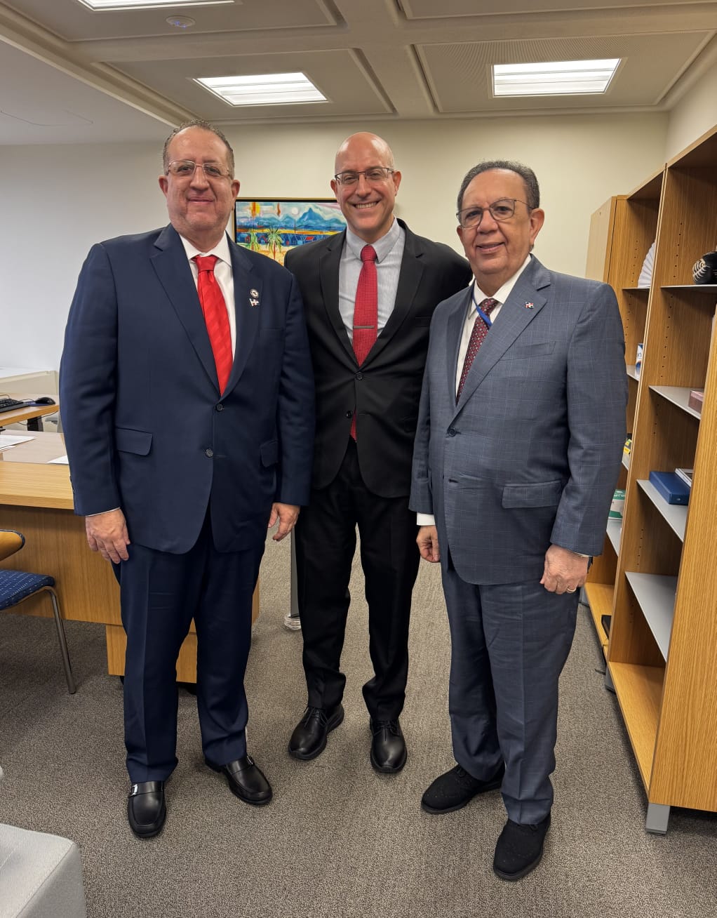 El gobernador del Banco Central de la República Dominicana, Héctor Valdez Albizu, y el ministro de Hacienda y Economía (MHE), Magín Díaz, sostuvieron un encuentro bilateral con el señor André Roncaglia, director ejecutivo del Fondo Monetario Internacional (FMI) por Brasil y presidente de la constituyente de países a la cual pertenece la República Dominicana, en el marco del inicio de las Reuniones Anuales del FMI y del Banco Mundial de 2025.