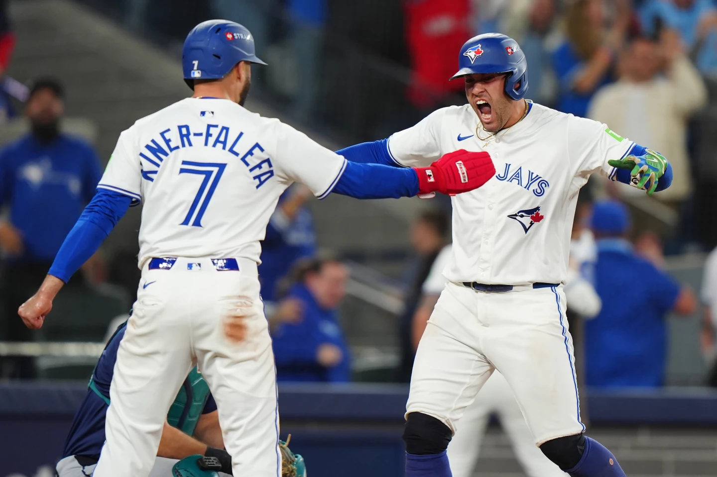 Addison Barger recibió una base por bolas para comenzar la séptima entrada, Isiah Kiner-Falefa conectó un sencillo con cuenta de 0-2 y el derecho de Seattle Bryan Woo fue retirado después de que el noveno bateador, el venezolano Andrés Giménez avanzara a los corredores con un toque de sacrificio.