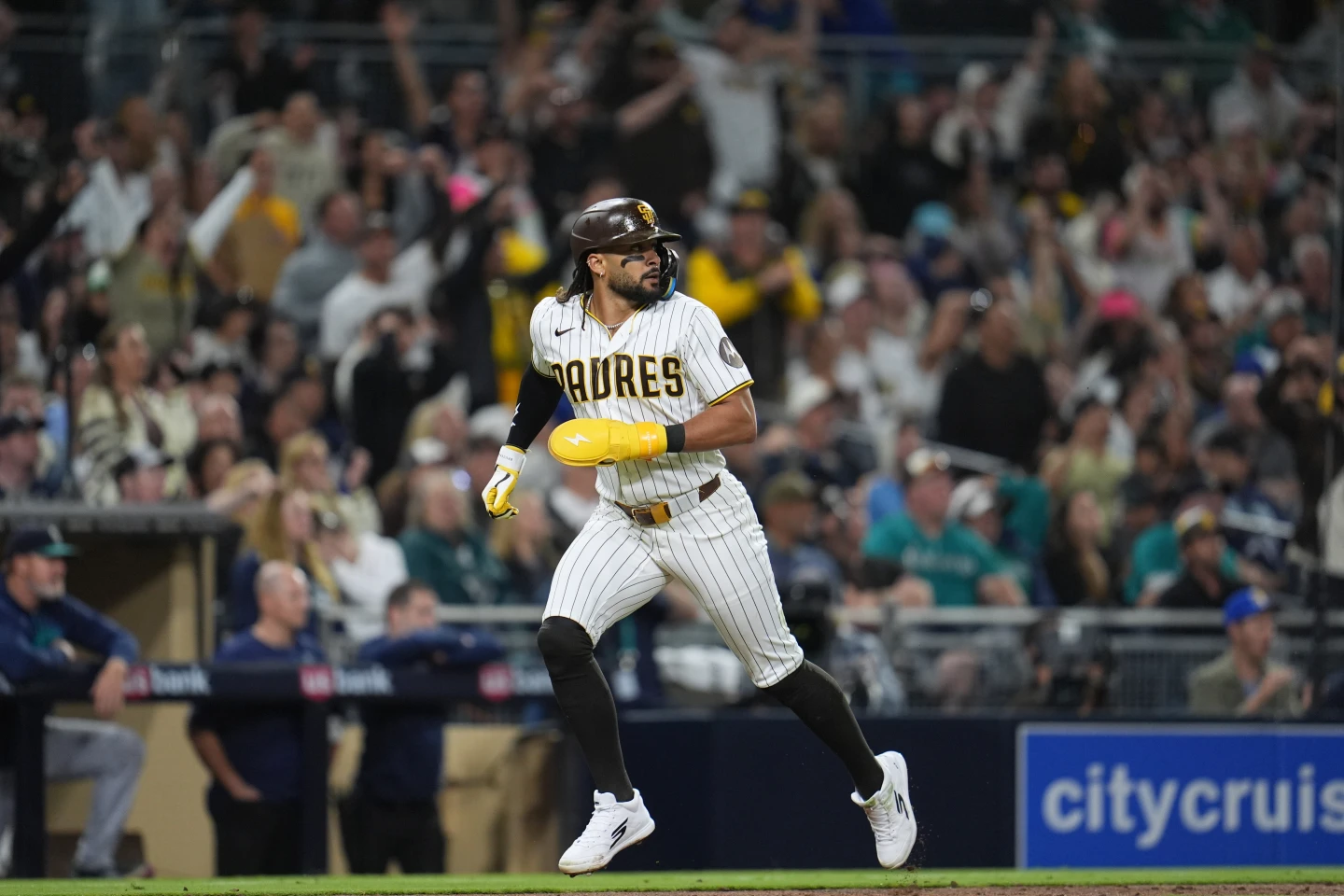 San Diego anotó cuatro carreras, tres de ellas limpias, contra Luis Castillo (0-1) en la segunda entrada, conectando cuatro hits y aprovechando algunos errores defensivos. Luis Campusano conectó un sencillo productor, el tercer hit consecutivo de San Diego, con un out, y Jake Cronenworth llegó a base por un error de lanzamiento de Castillo, llenando las bases. Otra carrera llegó con un rodado de Ramón Laureano al primera base Josh Naylor, quien no pudo controlar la pelota y solo pudo realizar la jugada en la base. Tatis conectó un sencillo de dos carreras al jardín central.