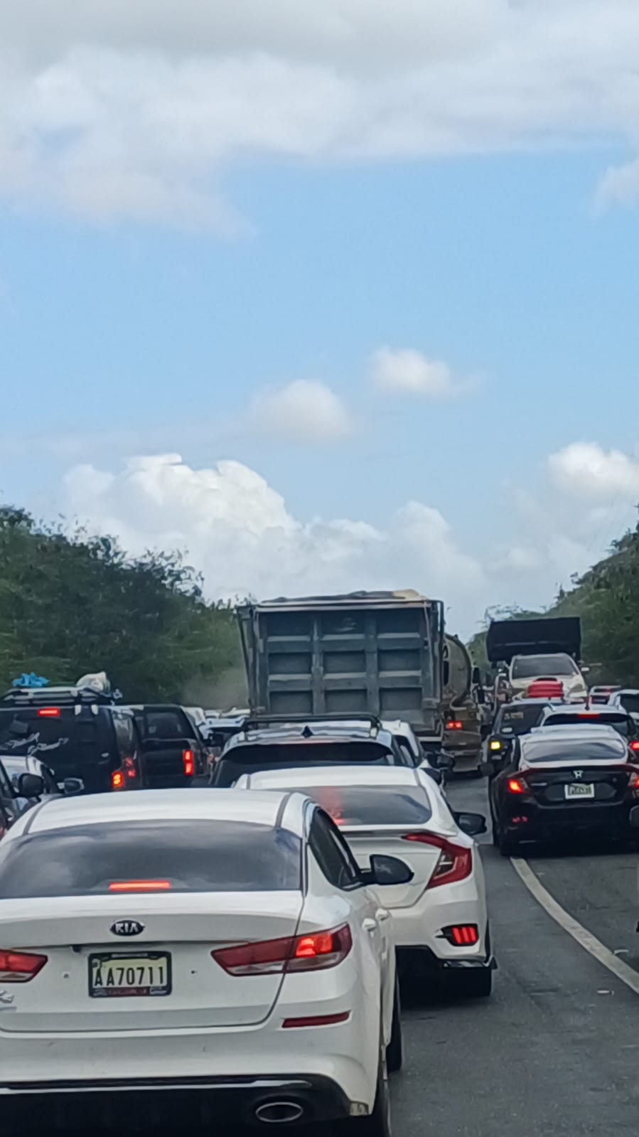 La situación afecta ambas direcciones de la vía, generando largas filas de vehículos y retrasos significativos para quienes se desplazan desde y hacia distintos puntos del país.