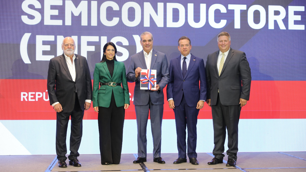 Santo Domingo.– El presidente Luis Abinader recibió este martes oficialmente la Estrategia Nacional de Fomento a la Industria de Semiconductores (Enfis), presentada por Ian Steff, CEO de mySilicon Compass, durante un acto donde se dio a conocer la hoja de ruta destinada a posicionar a la República Dominicana como un referente en la manufactura y ensamblaje de semiconductores.