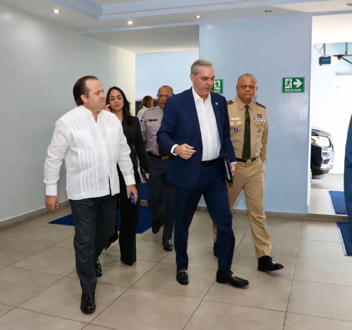 En compañía del mandatario, se encuentran los ministros; de la Presidencia, José Ignacio Paliza; de Interior y Policía, Faride Raful; de Defensa, teniente general Carlos Antonio Fernández Onofre; la procuradora General de la República, Yeni Berenice Reynoso; el director de la Policía Nacional, mayor general Ramón Antonio Guzmán Peralta y el viceministro de la Presidencia para Proyectos Especiales y Coordinación de Seguridad, Roger G. Pujols.