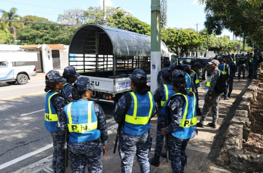 Desde primeras horas de la mañana, un amplio despliegue de efectivos policiales se mantiene en los alrededores de la sede diplomática, ubicada en la capital dominicana.