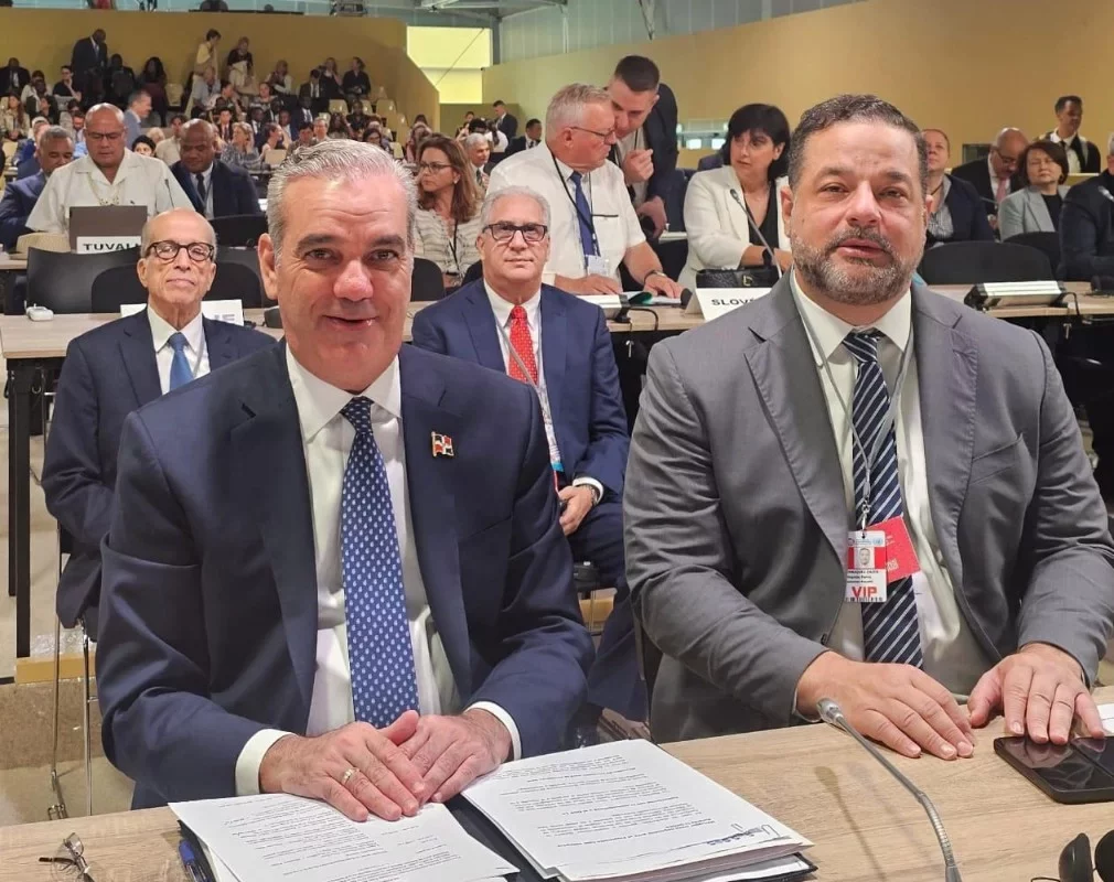 El mandatario dominicano, participa en el evento acompañado del ministro de Medio Ambiente y Recursos Naturales, Paíno Henríquez; el vicepresidente ejecutivo del Consejo del Cambio Climático y Mecanismo de Desarrollo Limpio, Max Puig; el presidente de la Autoridad Nacional de Asuntos Marítimos, Jimmy García Saviñòn; el embajador, representante permanente ante la ONU, Wellington Bencosme; y el embajador dominicano en Francia, David Puig.