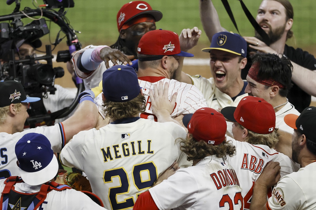 En el equivalente del béisbol a una tanda de penales del fútbol, el juego se decidió haciendo que tres bateadores de cada liga realizaran tres swings, ante lanzamientos realizados por los coaches. El cambio se acordó en 2022 para aliviar la preocupación de que los equipos se quedaran sin lanzadores.