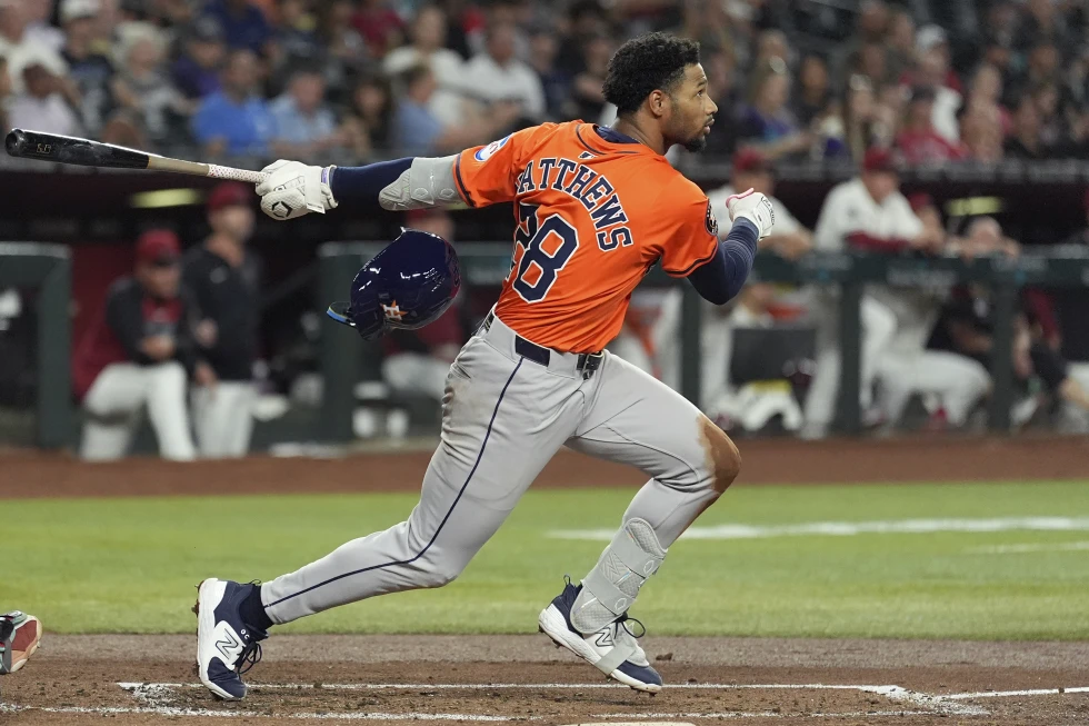 Matthews conectó sus dos primeros jonrones en las Grandes Ligas en la victoria de Houston 6-3 el lunes y bateó un cuadrangular de dos carreras contra Jake Woodford (0-1) en la octava. El venezolano José Altuve anotó con un lanzamiento descontrolado para poner a Houston arriba 3-1 en la novena.